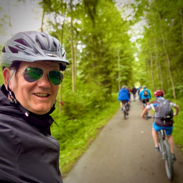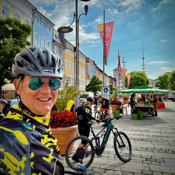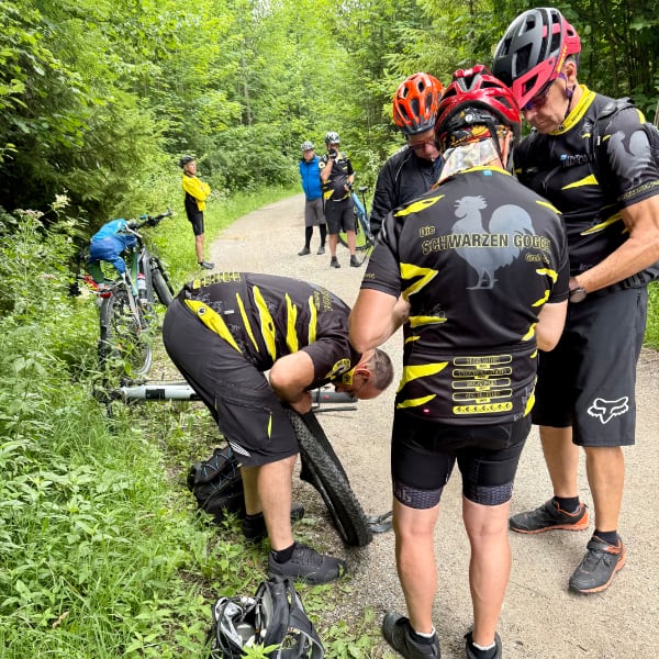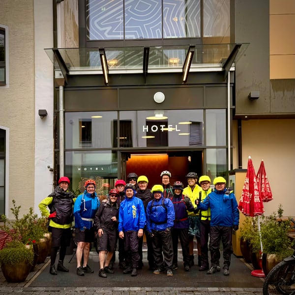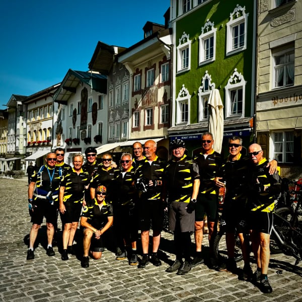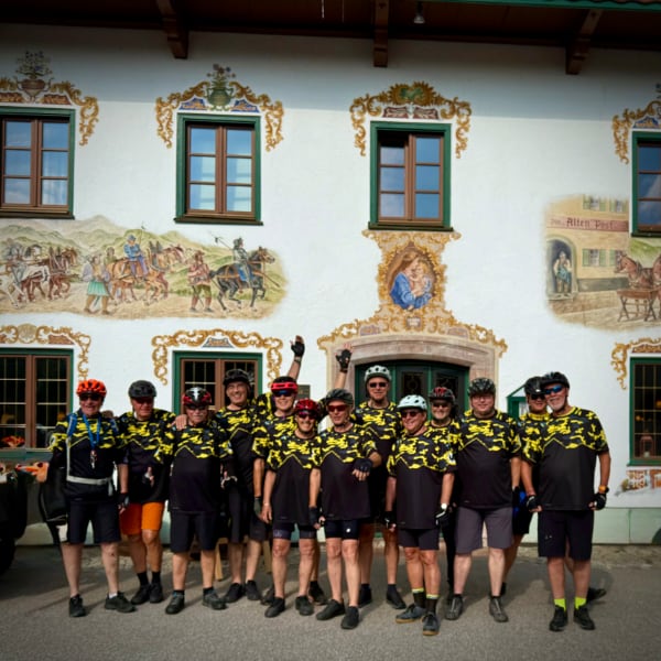Aufstellung in Siegsdorf vor dem Hotel Alte Post zur letzten Etappe